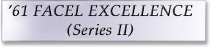 History: Facel (Forges et Ateliers Construction d’Eure at de Loire-Medallon) which was founded by Jean Daninos in 1939, began as metal forming specialists turning out metal furniture and combustion chambers. After WW II, Facel moved on to manufacturing jet engine parts, Vespa motor scooter stampings and car bodies for French Ford, Simca, Panhard, and French Jeep. With an improving French economy, these manufacturers brought their car body production back in-house and Facel was stranded with a large, idle manufacturing capacity. Founder Jean Daninos, who had studied under Pininfarina, began to plan a car of his own, beginning with six Facel Bentleys which were built between 1949 and 1951. Seeking to fill the high performance/luxury void left by the demise of Bugatti, Delahaye, Delage, and Talbot, Daninos decided to build his own cars utilizing a chassis and body of his own design and powered by Chrysler V8 engines. Over a ten year period, 7 different luxury V8 powered coupes were built, specifically the FV1, FV2, FV2B, FV3, FV3B, FV4, HK500 and Facel II and the 4 door Excellence that was built on an extended (by 20 inches) FV chassis. Daninos’s desire to build an all French car was Facel’s eventual undoing and the production of the smaller Facellia coupes and convertibles crippled the company. Facellia’s were initially powered by Facel’s own 4 cylinder, twin overhead cam engine (built for Facel by Pont-A-Mousson, Facel’s manual gearbox supplier) and while advanced in design, these engines suffered from bad water circulation and rigidity problems. These problems ultimately led to the substitution of Volvo and then Austin Healey engines but the expense of warranty repairs and with its reputation ruined, Facel went into insolvency in 1964.