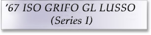 History: The ISO company was founded by Renzo Rivolta, an industrialist best known for making refrigerators, motor scooters and the Isetta bubble car, which he later licensed to BMW. The first high performance car made by ISO was the very successful 2 door Rivolta. This was followed by the fastback Grifo which grew out of the earlier Rivolta that was engineered by Giotto Bizzarrini, designed by Bertone (Giugiaro) and powered by Corvette 327 V8. Using the same Bizzarrini designed unit-body/monocoque underpinnings, Bertone designed a sleek 2 seat berlinetta. With the prototype Grifo A3L receiving critical acclaim, a production version appeared 18 months later in 1965. This production GL model was available with the option of a Corvette 300 hp (1965-66), 350 hp (1966-70) or 365 hp (1965-66). A higher powered, limited production version known as the Grifo “7 Litre” using a Corvette 427, 400 bhp engine (usually in combination with 4-speed gearboxes or 3 speed automatics, although a few were fitted with a ZF 5-speed), became an option in late 1968. The 5-speed big block version was the fastest of all Grifo’s and in the late sixties was recognized as the fastest production car in the world. A covered headlight Series II Grifo appeared in 1970. Most Series II cars were Ford Cleveland 351 powered, although the big block cars stayed with Corvette power, albeit the 454, which provided more low end torque, but lower speed at the top end.